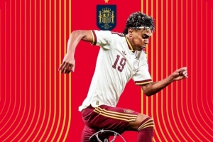 西班牙国家队官推晒出海报,祝贺亚马尔获奖,并配文写道: