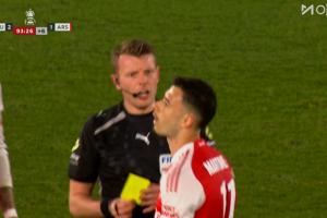 心态急了!补时阿森纳仍落后,马丁内利推搡裁判被出示黄牌